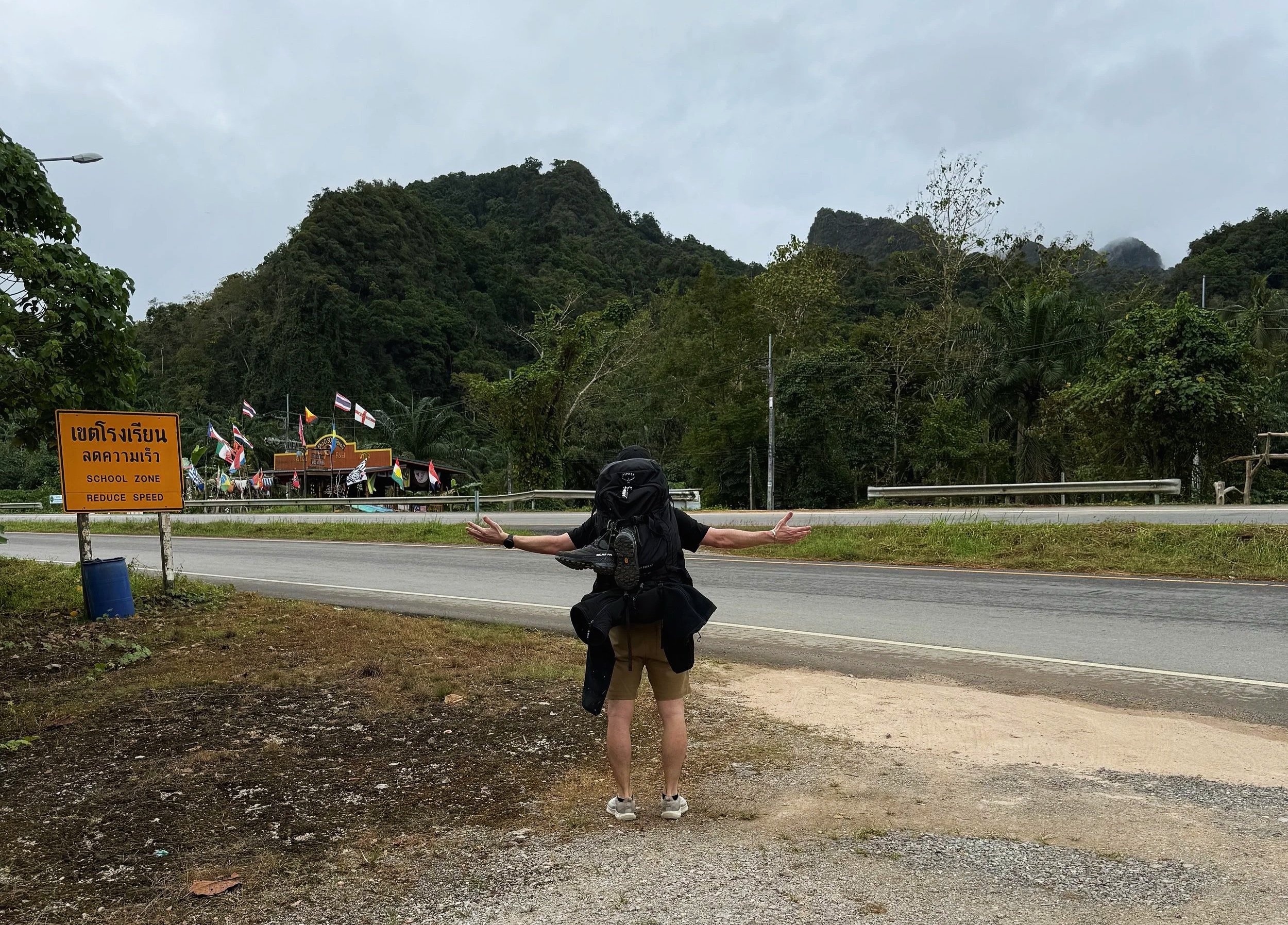 Après une bonne nuit à Phuket, nous avons pris un car au départ du Terminal 2. Le trajet a duré environ deux heures et demie à trois heures, avec une pause d’une vingtaine de minutes pour se dégourdir les jambes, aller aux toilettes et grignoter quelque chose. À notre arrivée, nous avons découvert Khao Sok, un petit village assez touristique, rempli d’auberges de jeunesse, de bars et de restaurants. C’est également d’ici que partent les excursions nocturnes dans la jungle, mais j’y reviendrai plus tard.
